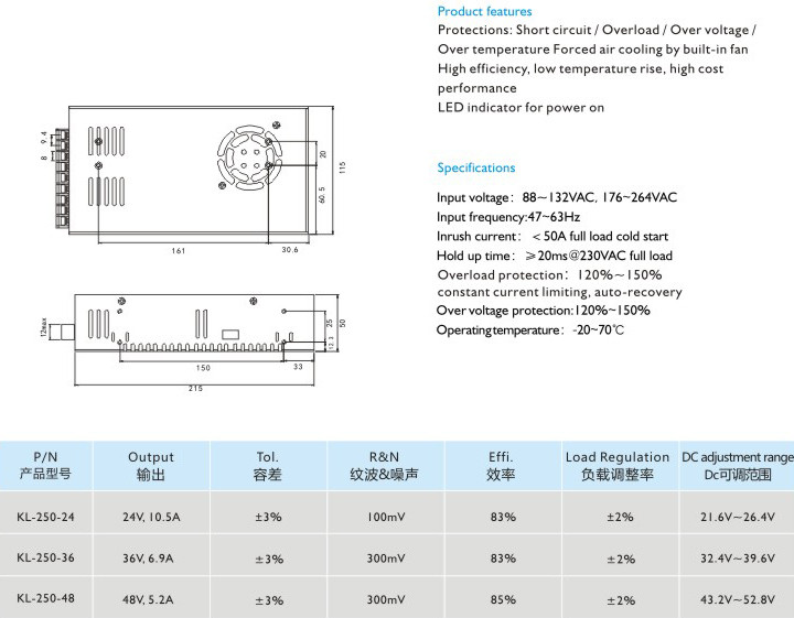 高效率、低溫升、高性價(jià)比 適用于LED顯示、工業(yè)控制 輸入電壓:88-132VAC,176-264VAC 輸入頻率:47~63Hz 沖擊電流:<50A滿載冷態(tài) 保持時(shí)間:≥20ms@230VAC滿載 過(guò)載保護(hù):120%-150%自動(dòng)恢復(fù)限;限流保護(hù),自動(dòng)恢復(fù) 過(guò)壓保護(hù):120%~150% 運(yùn)行溫度:-20-70℃" />